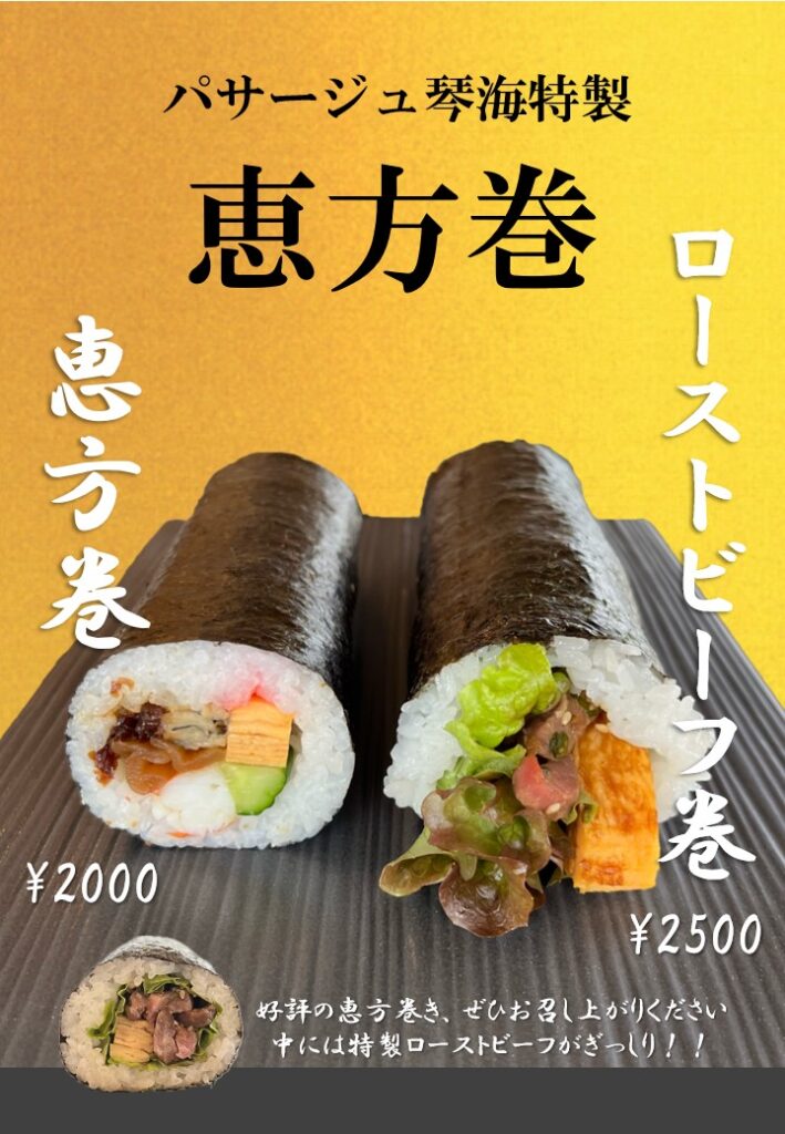 2026年の恵方巻は、和の恵方巻と洋のローストビーフをご用意しました。